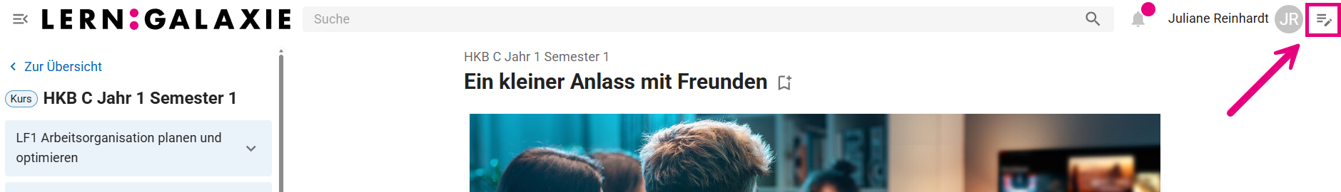 Die Funktionsleiste bündelt alle Funktionen, die für Sie zur Verfügung stehen. Einzelne Funktionen können Sie nur innerhalb eines Kurses nutzen.