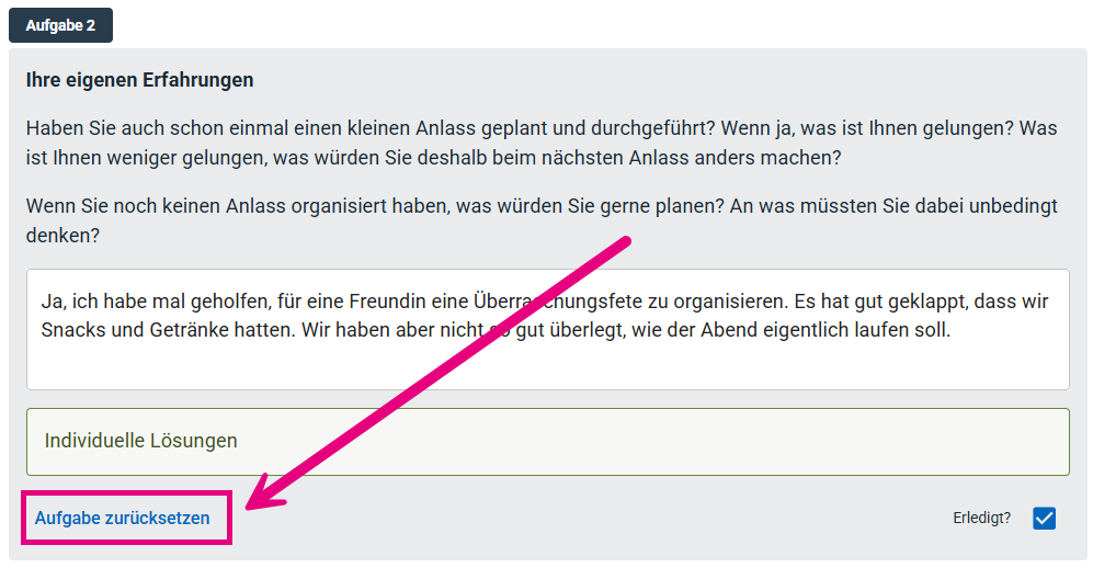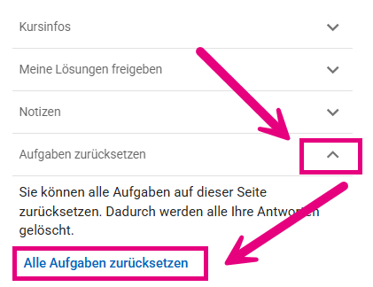 Falls Sie eine Aufgabe noch einmal neu lösen möchten, können Sie diese gleich bei der Aufgabe selbst zurücksetzen.